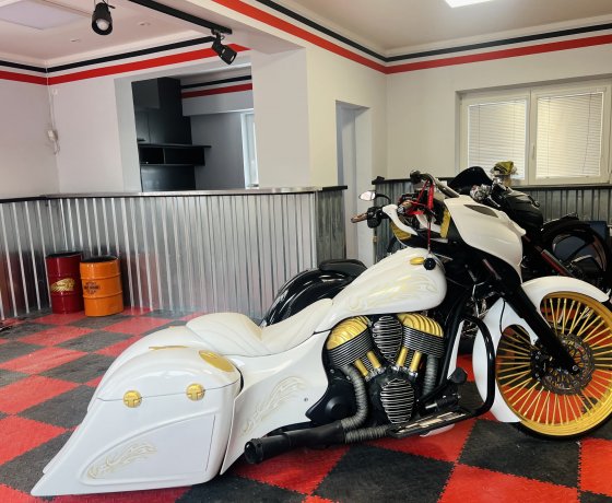 The building is undergoing a complete renovation and will include a contemporary workshop as well as a showroom and a club. The showroom will continuously display our Bagger projects and at the same time create a suitable facility for our existing and future customers and friends of the Bagger style.